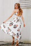 The beach never looked so appealing! This lovely beach dress features a flowing maxi silhouette, a halter top neckline, a side slit, and a back tie closure.