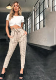 A must have! This season brings you high waist, belted pants with a frill elasticized waist line. These pants also feature two front slanted pockets on a relax full length fit.