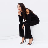 Cold shoulder Ribbed Bandage Knitted Top