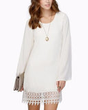 Feel the comfort of wearing this beautiful mini dress. It features an O-neck line, long sleeves, lace hem line and casual look.