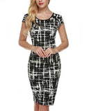 Feel accomplished in this beautiful pattern print dress. Wear it to the office, cocktail party or any other important function. It features a cap sleeve, sexy pattern print, and back zipper.