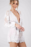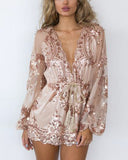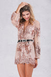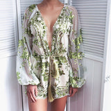 Just perfect for those special occasions this season! This cute romper features a sequin embroidery throughout, long loose comfortable sleeves, and a plunging neckline. Pair it up with lace up heels and a choker to complete the look!