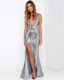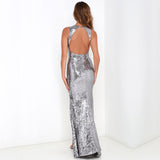 Flawless and gorgeous, look beautiful in this shiny bodycon creation covered in sequins. It features a plunge neckline, a sleeveless style with a backless look. This classic shape is figure flattering and will show off your great legs.