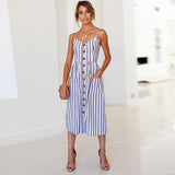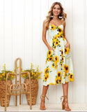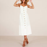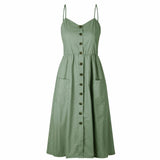 Get kissed by the sun with this light and airy summer dress featuring front buttons with spaghetti straps and two front pocket