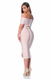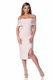 Look stunning wearing this beautiful off the shoulder split bandage dress
