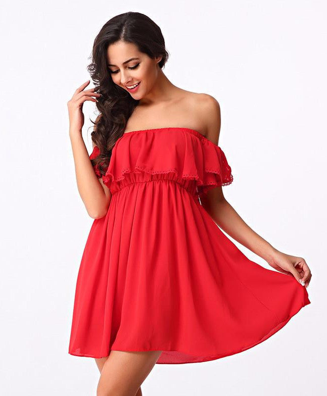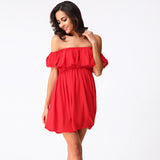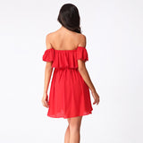 Get the look! there are still plenty of days of fun in the sunshine left this summer, specially when you wear something so sweet as our red sweet summer passion dress. This dress features an off the shoulder look with ruffles, an above the knee hemline, and an empire waistline.