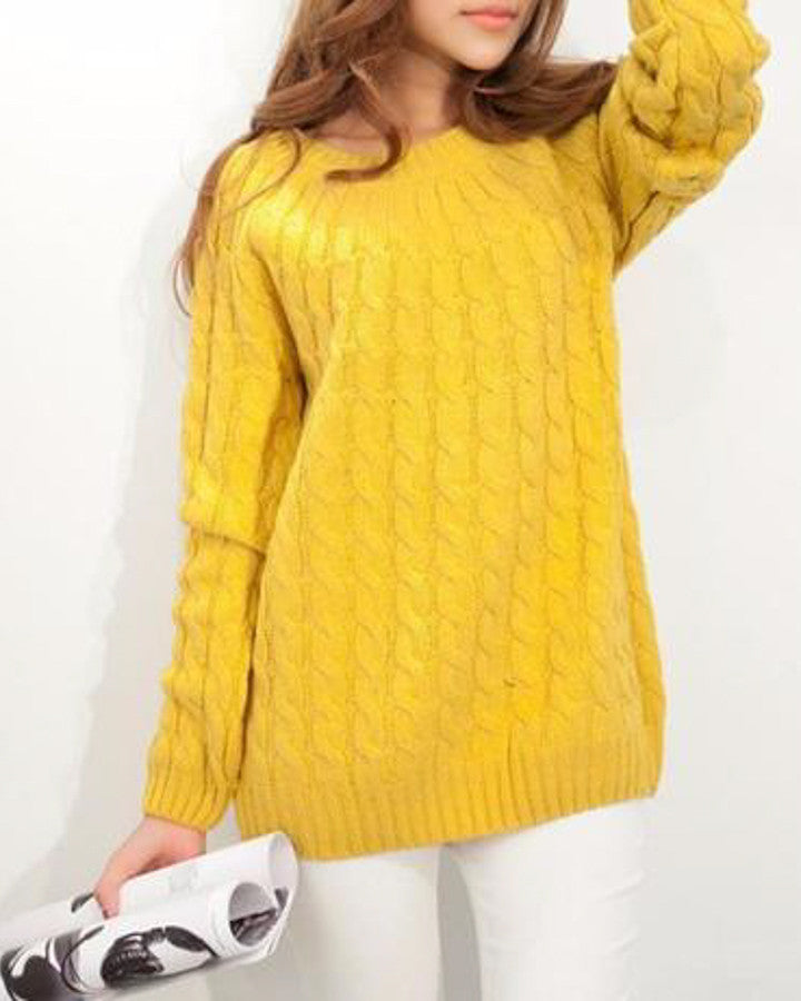 A must have for this season! This beautiful knitted sweater is available in several colors. It features an O-neckline, long-sleeves, and below the waist hemline