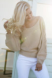 Chic and Flirty with oversize lace up sleeves. This comfy sweater features an off the shoulder style. Wear it with your favorite jeans. Shop the look.