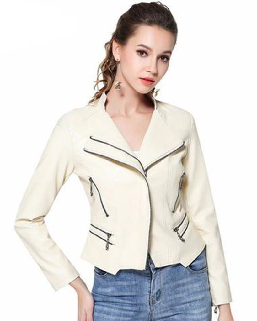 Chic and trendy! This jacket is a must have! It features a lapel neckline, zipper details, zippered sleeves, and front hand pockets. Jacket is flawlessly lined.