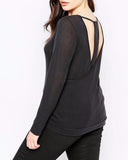 A must have piece for your closet. Beautiful and flattering. This top features a hollow out back, long sleeves, and an O-neckline.