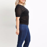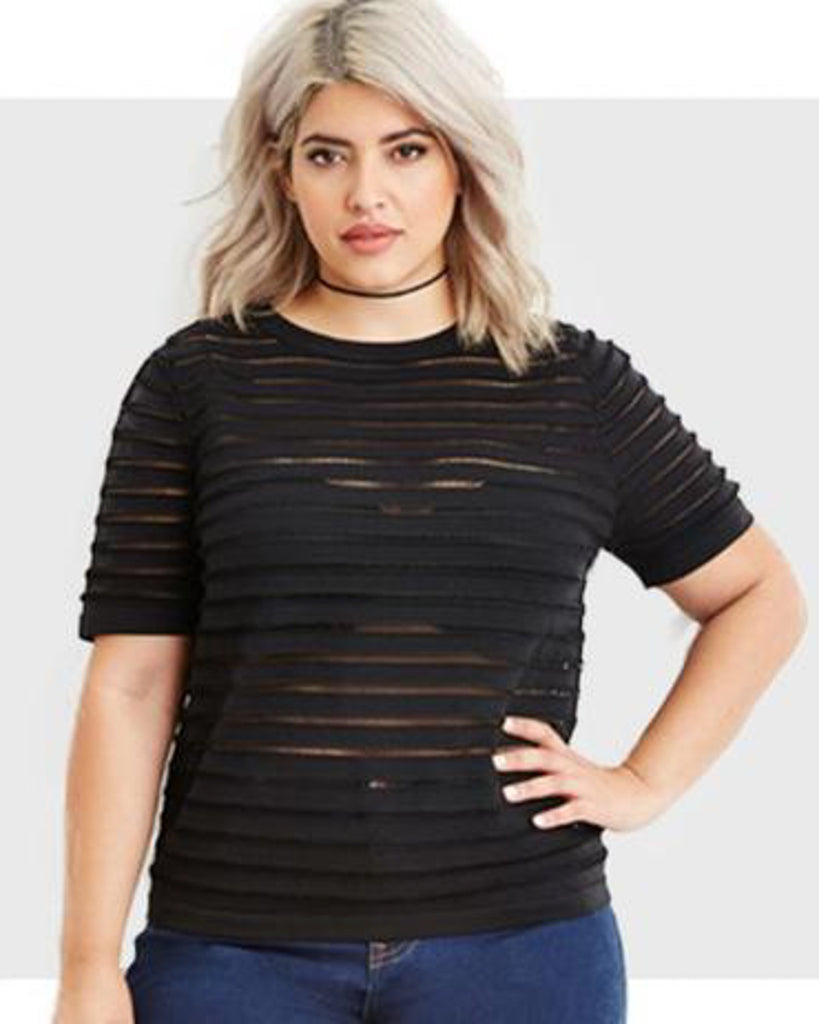 A sultry chic top, a must have for your closet! This cute top features an O-neckline, short sleeves, and bandage sheer mesh look. Dress it up or down! Wear it with a power necklace from our beautiful collection.