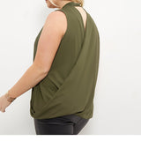 Get the trend! This blouse is designed to make you look chic and sexy. It features a choker style, a V-neckline, and sleeveless style.