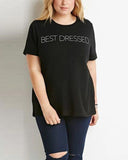 You will always be "Best Dressed" with us, specially when wearing this cute solid black tee. It features short sleeves, an O-neckline, and below the waist hemline.