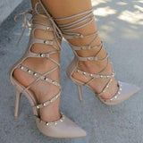 • Lace Up Studded Pointed Toe Stilettos
