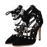 • Roman-Sandals-Women-Pumps-European-New-Style-Booties-Ladies-Sexy-Hollow-Cross-Lace-Up-Rivets-Stiletto-lace-up-heels-stilettos-stud-accentuated-shoes-high-heels-pointed-toe-heels