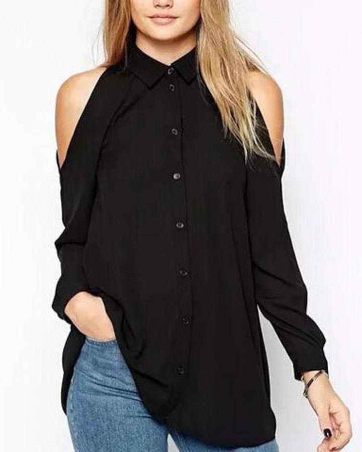 Feel the comfort of this loose fit shirt. It features a cold shoulder look, long sleeves, and hip hemline. Wear it with a pair of boyfriend jeans or leggings for a complete look