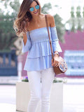 Revamp your closet this summer with the latest trends and styles like this gorgeous top. It features a must have off the shoulder look, a ruffled bodice and layered sleeves. It looks amazing with jeans or a skirt.
