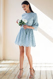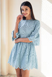 Feminine and flirty this adorable dress features a beautiful hue of sky blue, with an intricate eyelet design all throughout. This dress is a must have for the season! It looks amazing with pumps or sandals. Take your style to the style to the next level and add a delicate necklace to your look!