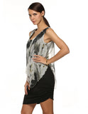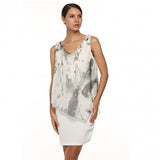 Sleeveless V-Neck Painting Chiffon Patchwork Dress